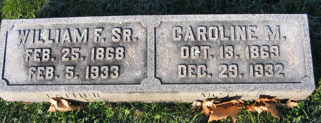 Grave markers for booth William and Caroline Codori. Click either name view more.
