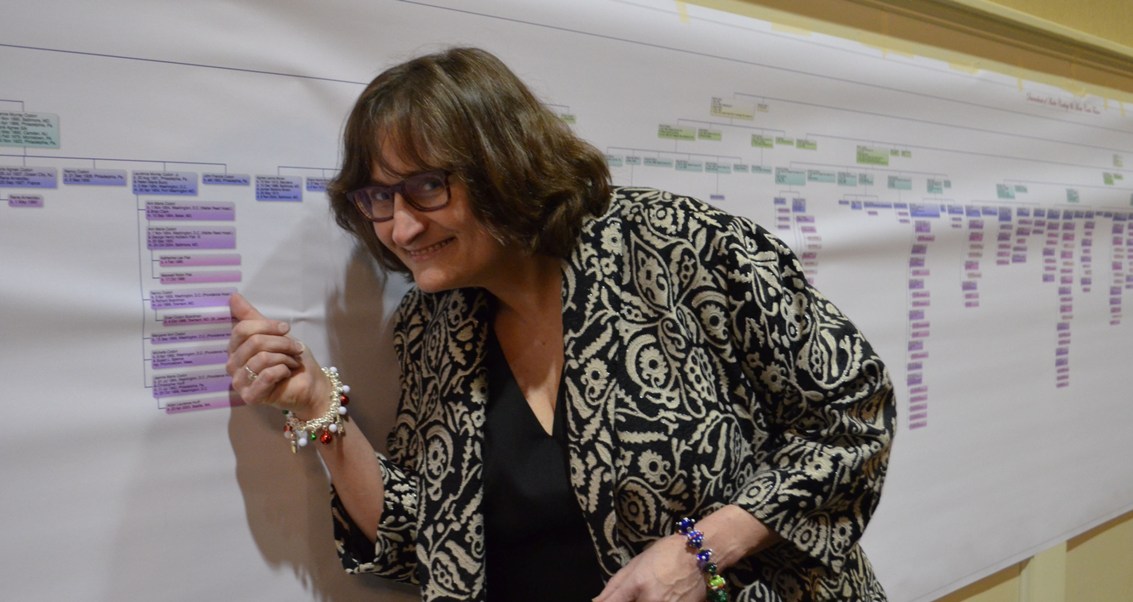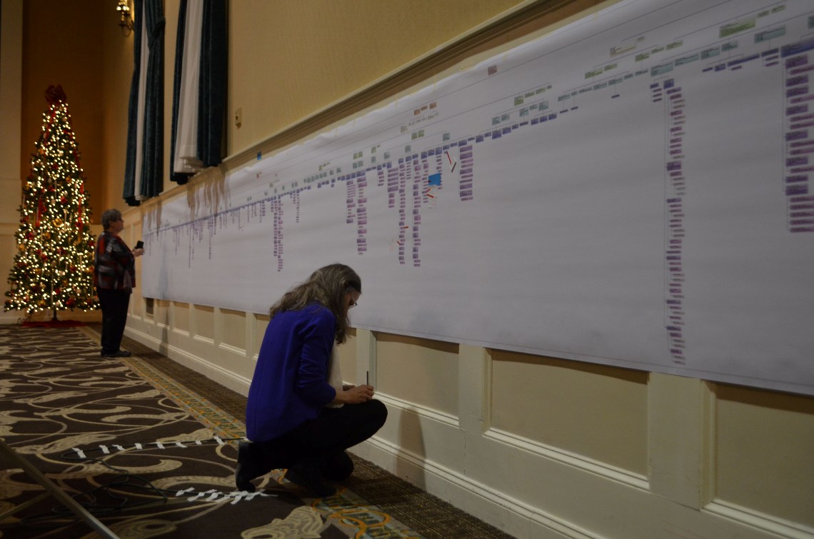 Barbara Andes looking for her place on the tree.