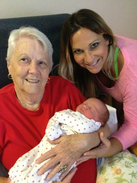 Dottie holding great granddaughter Lindsey Ann Ainsworth with granddaughter Courtney Aisworth