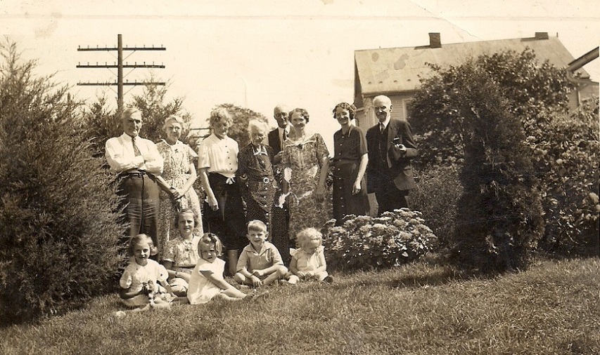 L to R: Bill Smith, Helen Spaulding, Adelaide Chrismer, Rosalia Smith, Charles W. Chrismer, Mary Frommeyer, Regina Chrismer. The children are Joanne Miller, Jean Miller, Mary F. Chrismer, Mark Miller and Dottie Chrismer. |
