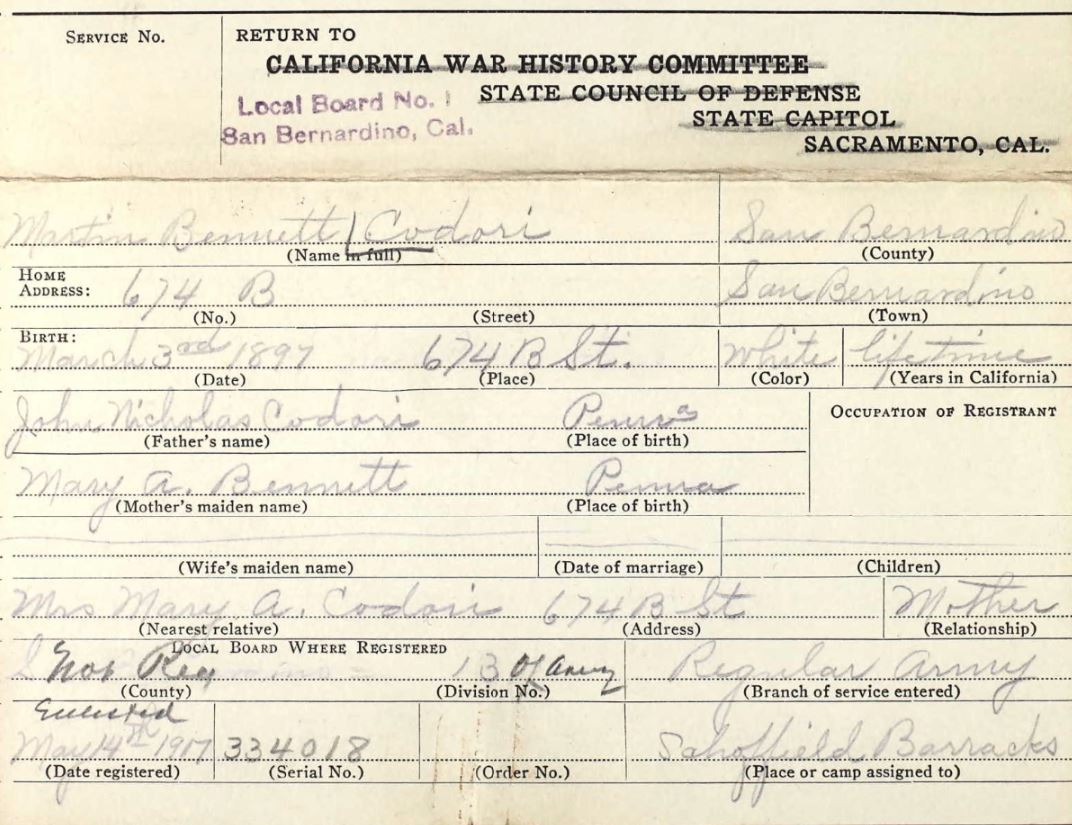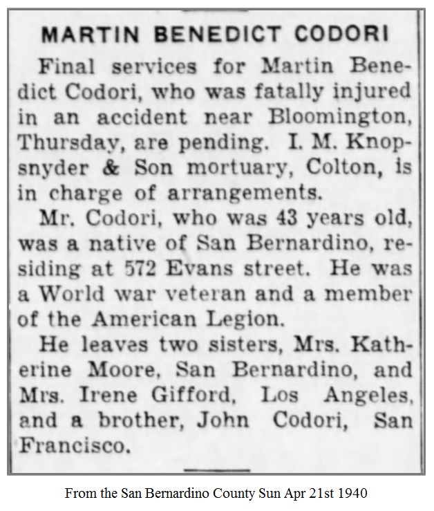 Martin Bennett Codori was born in 1897 in San Bernardino,