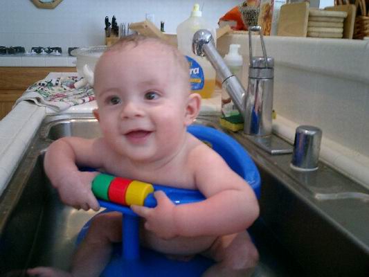 Aidyn at 6 months with big brother Christopher 8/6/2004 |