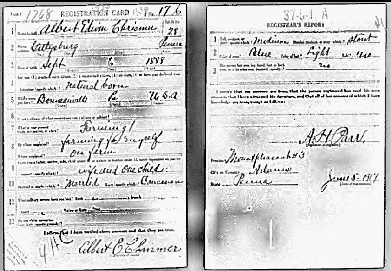 William J. Chrismer family L to R: William J. Chrismer (son of John E & Susanne (Codori), Albert, Little Richard Chrismer (Charles' son), Charles W. Chrismer, Bernadine, Mary (McSherry), Rosalia (Smith), Adelaide, Regina, & Mary Chrismer. These are all six of William & Rosalia's children. |