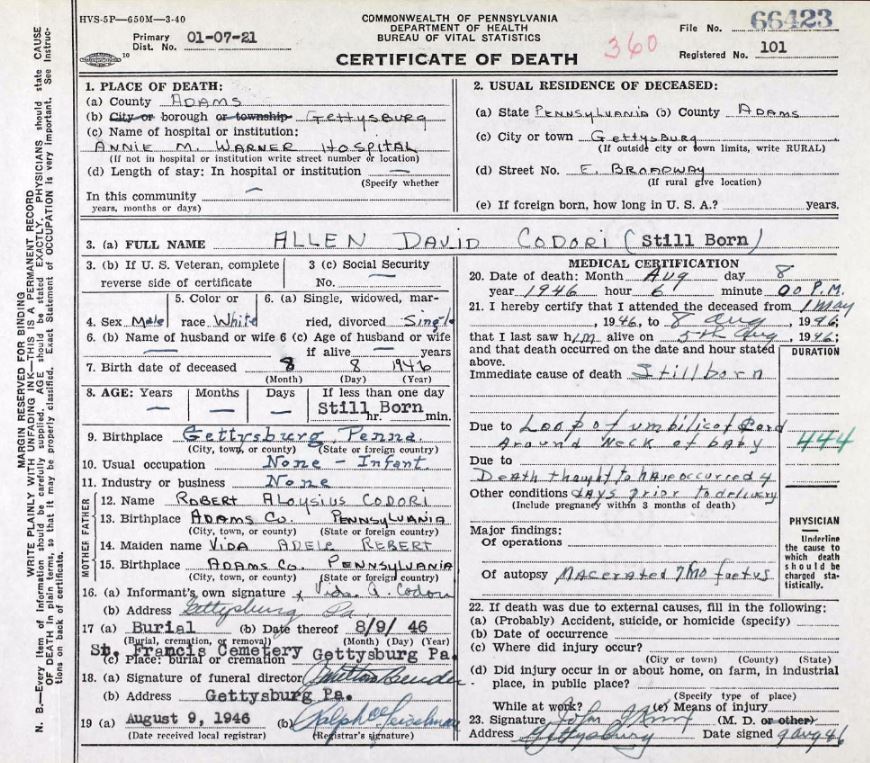 From the cemetery of St. Francis Xavier Catholic Church in Gettysburg, PA.