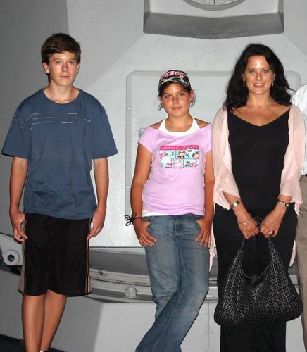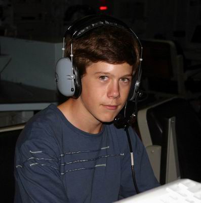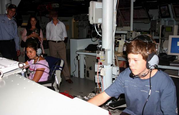 Andy and sister Ally at the controls with cousin Eric and mom Lauren in the background. |