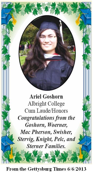 Graduation photo from the Gettysburg Times 6/15/2009. |