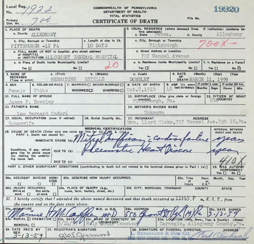 ![]() 1) Leo B. Sr. 2) Wife Agnes Codori 6) Dorothy 5) Bernadine 3) Leo B. Jr. 4) Frances 7) Eugene |