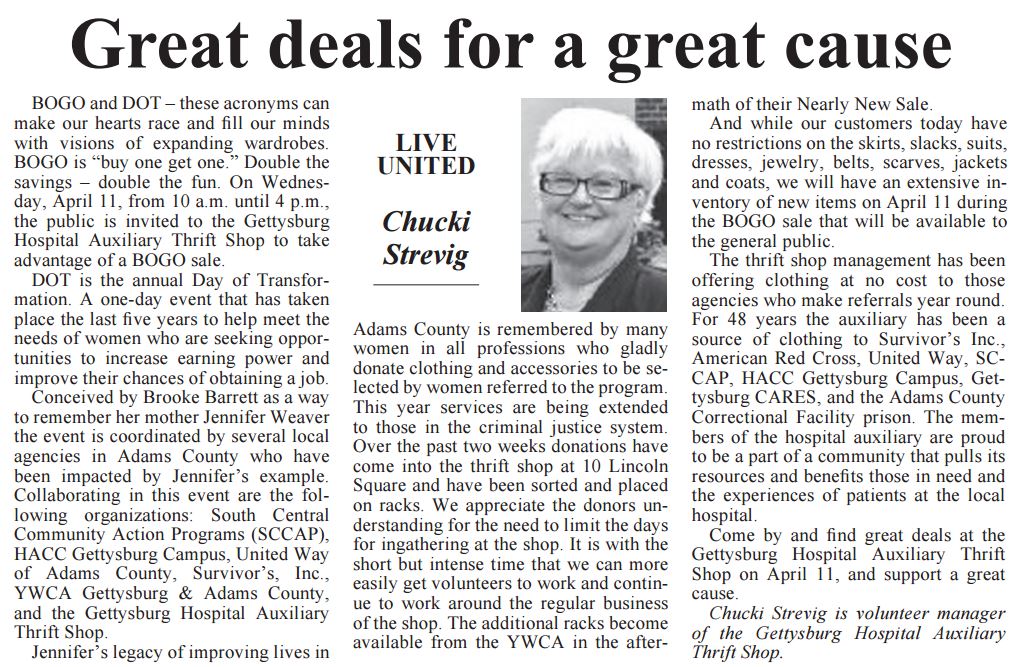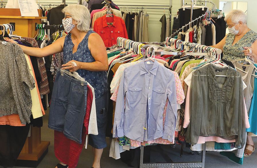 The Gettysburg auxiliary thrift shop, 10 lincoln square, reopened for business July 6. assistant Manager shelly barnes, left, and Manager Chucki Strevig arrange items to be sold in the store.
