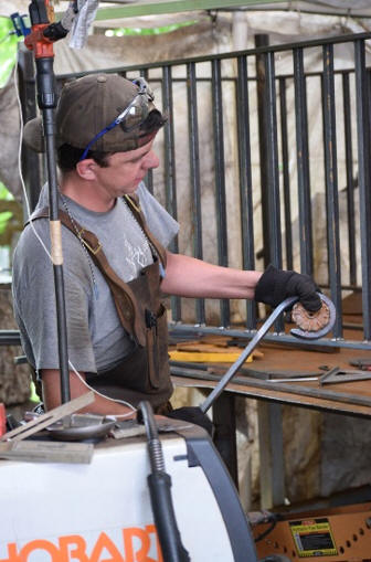 welding it at his metal and ceramic studio, Baugh Art in Huntsville’s Old Town.