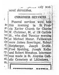L to R: William J. Chrismer (son of John E & Susanne (Codori), Albert, Little Richard Chrismer (Charles' son), Charles W. Chrismer,