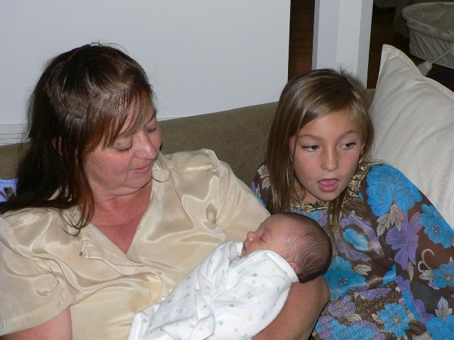 Christy and daughter Malissa with Devona at two weeks |