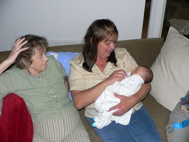 Jean Codori with her daughter Christy and young Devon at two weeks. |