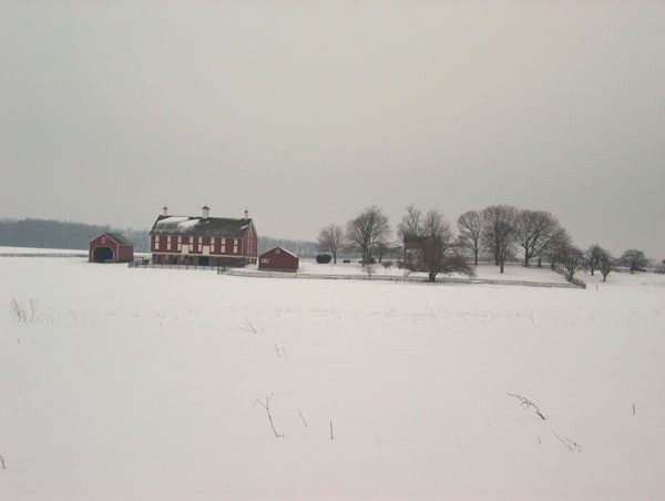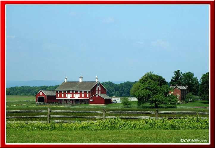 One of the greatest shots of the farm. This is from the Internet and can be found with other photos of Gettysburg at: http://www.mikelynaugh.com/VirtualCivilWar/ |