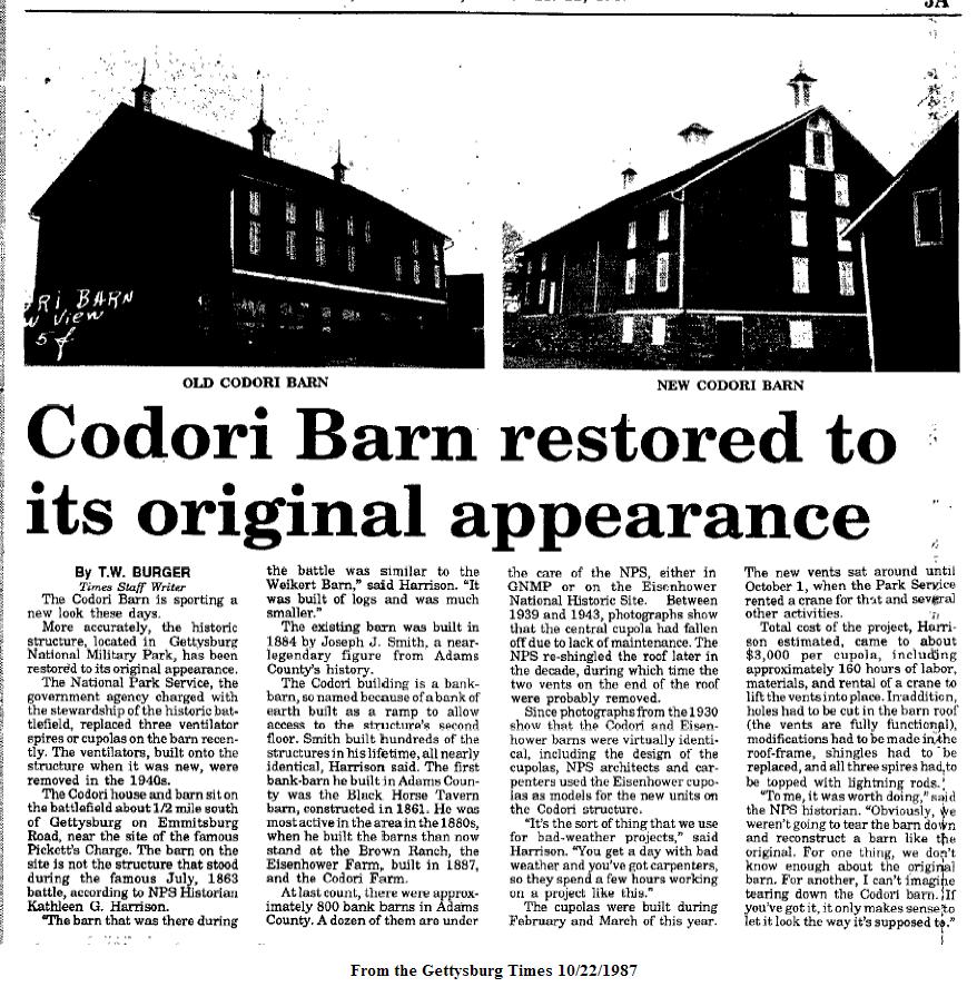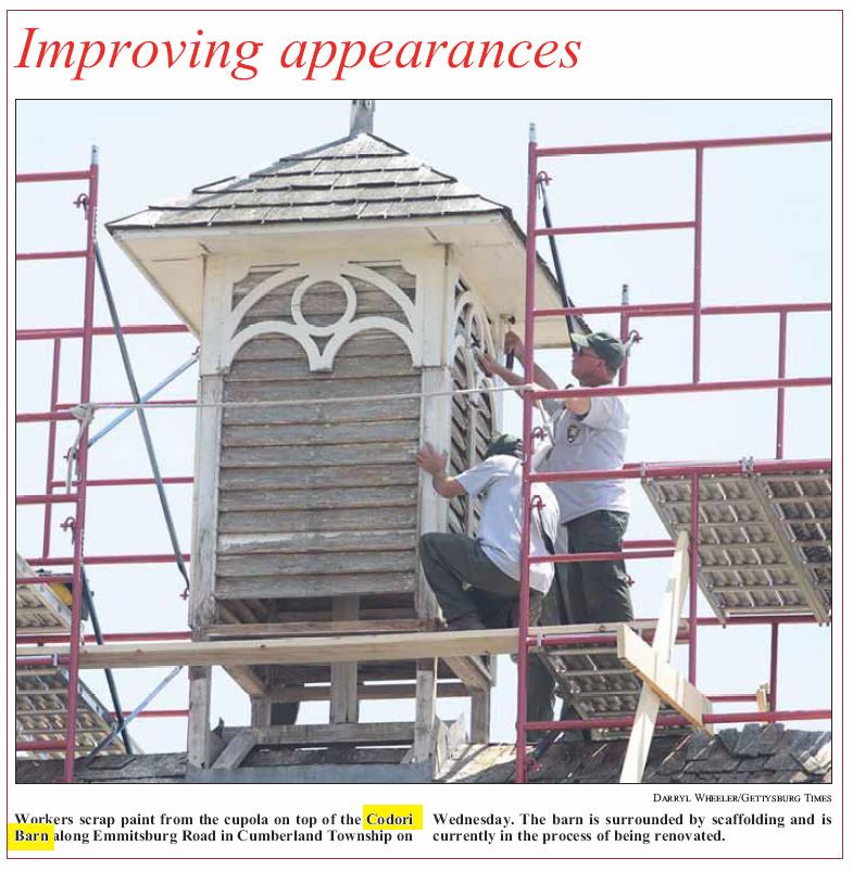 A page from the Gettysburg Daily on the 2010 repair of the Codori barn.