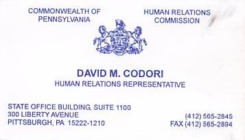 Business card Jeffery M. Codori of San Francisco