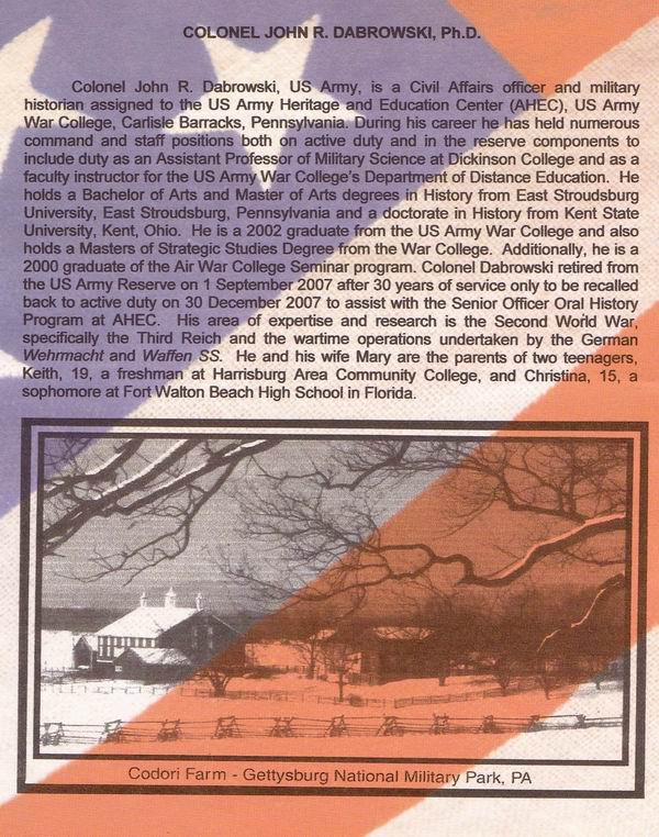 Col. John Dabrowski, this years guest speaker at the 2008 Codori Christmas dinner.