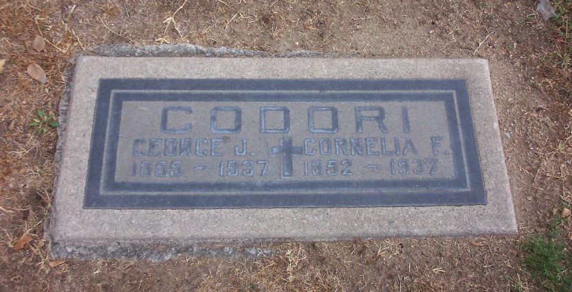 2001. Cornelia Franceanna Florence (b. November 2, 1855, d. April 21, 1937) Cornelia Franceanna Florence400 was born November 2, 1855 in Emmitsburg, PA., and died April 21, 1937 in San Bernardino, Calfornia. She married George Joseph Codori, son of Nicholas J. Codori and Susan Mathilda Stambaugh. More About Cornelia Franceanna Florence: Burial: Mt. View/Pioneer Memorial Cemetery , San Bernardino, Calfornia. Occupation: Worked as a cook at a resort in Penmar Park, MD after George left. Children of Cornelia Franceanna Florence and George Joseph Codori are: Harry N. Codori, b. September 25, 1879, Emmitsburg, PA Margeret E. Codori, b. April 24, 1881, GETTYSBURG, Adams County, PA., d., San Bernardino, California. Edgar E. Codori, b. June 25, 1883, Gettysburg, Adams Co. PA.405, d. 1951. Florence C. Codori, b. September 20, 1884, Gettysburg, Adams Co., PA.. Stella L. Codori, b. August 25, 1886, GETTYSBURG, PA.407. George L. Codori, b. September 12, 1891, Hagerstown, MD407, d. December 1963. Charles Francis Codori, b. February 28, 1876, Emmitsburg, PA |