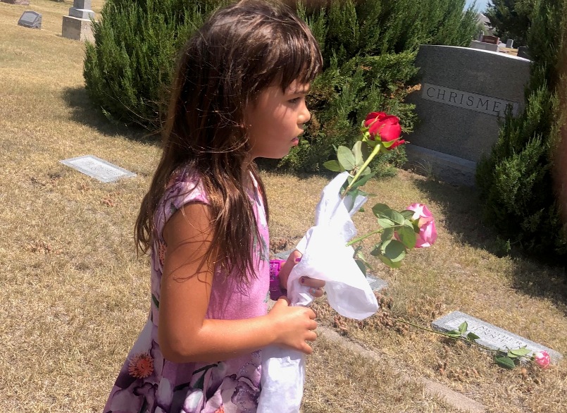 Nova, Darla and Mark Hale at a Chrismer grave site.