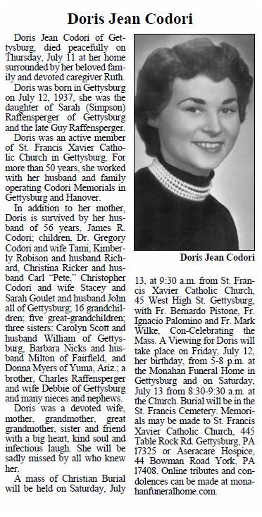John Goulet, Doris Codori, James Codori, Pete Ricker, Christina Codori Ricker and Kimberly Codori Robison.