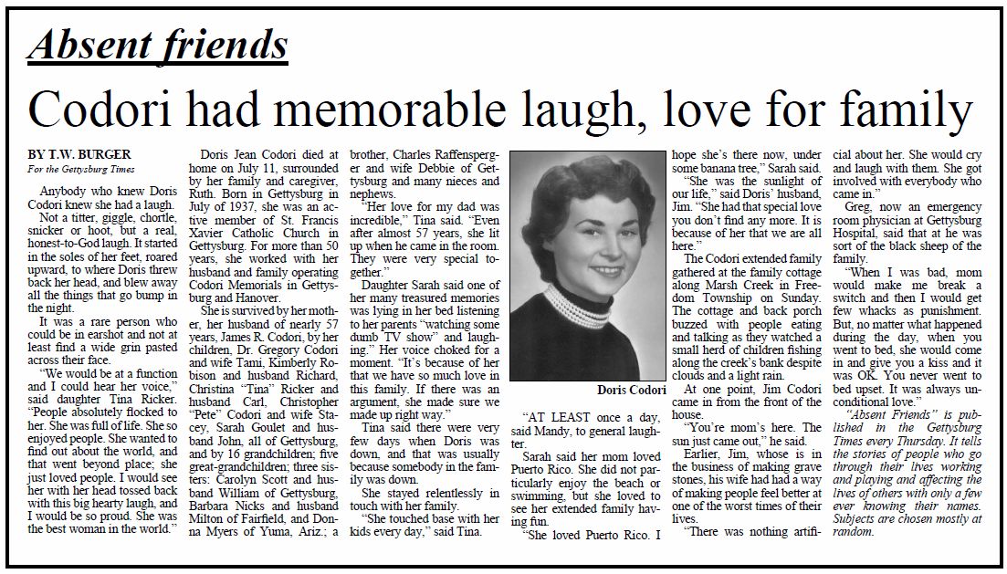 Greg Codori , Christopher Codori, Stacy Codori, Sara Codori Goulet, John Goulet, Richard Robison, Doris Codori,