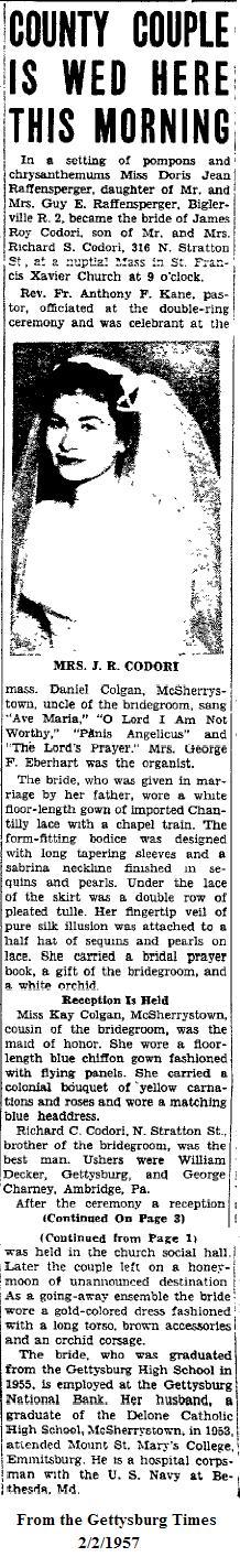 Seated L to R: Mary Codori, James Codori and Doris Codori,