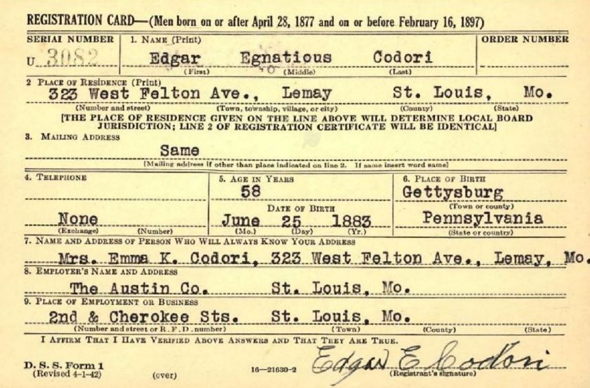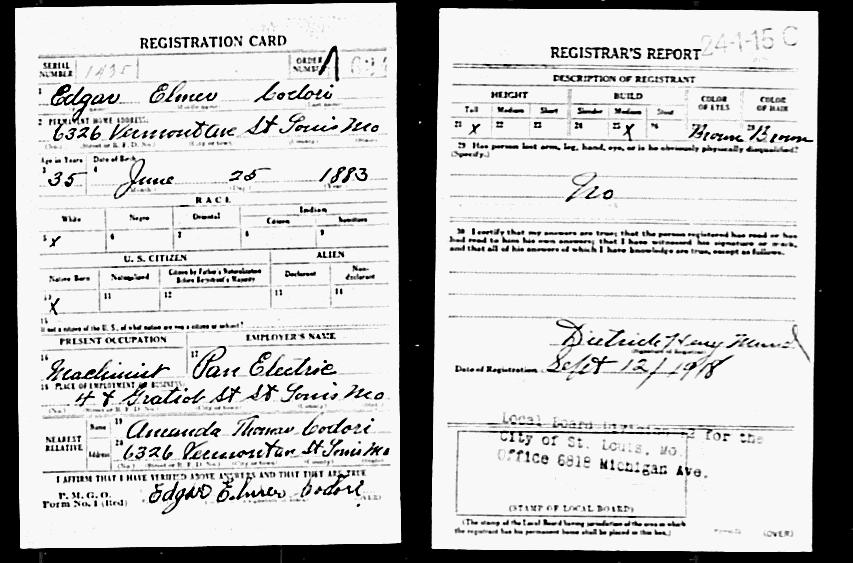 Edgar was a carpenter according to information that was sent to me by Cynthia Codori Scribner of FL sent on 1/11/2001 by email