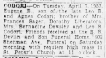 ![]() 1) Leo B. Sr. 2) Wife Agnes Codori 6) Dorothy 5) Bernadine 3) Leo B. Jr. 4) Frances 7) Eugene |