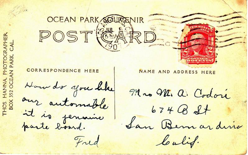 Fred on the right with friend at the Ocean Park Boardwalk 1907.