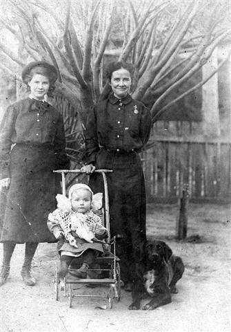 Helena with younger sister Kate and very young brother John Jay Codori in the stroller.