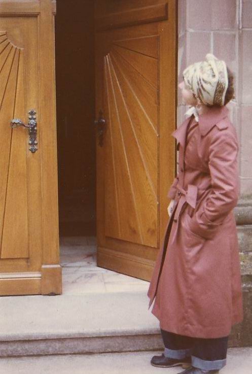 Carol Codori at the doors of the church in Hottviller, France. |