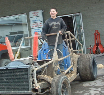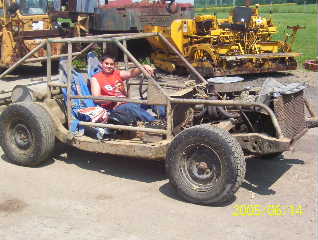 Jackson with his home built car. Jackson did all the work, welding and motor work. 6/14/2005