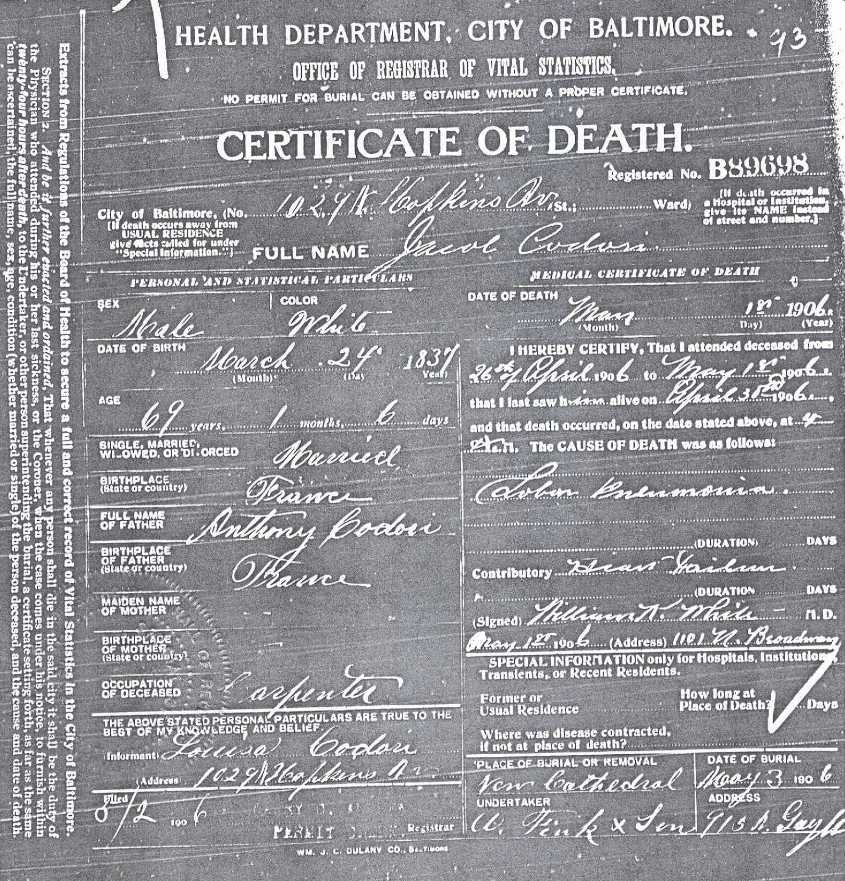 Jacob Codori was first listed in the Baltimore City Directory in 1878 as a