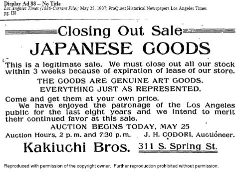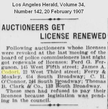Ad from Los Angeles Times 5/25/1907. James as an auctioneer.
