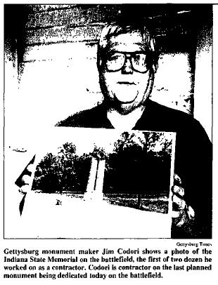 From the Gettysburg times May 27 2002 James Codori of the Codori Memorial of Gettysburg. Click the link below to view their web site. http://www.codorimemorials.com/