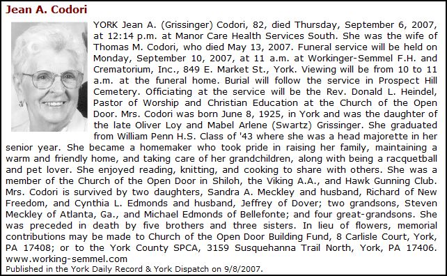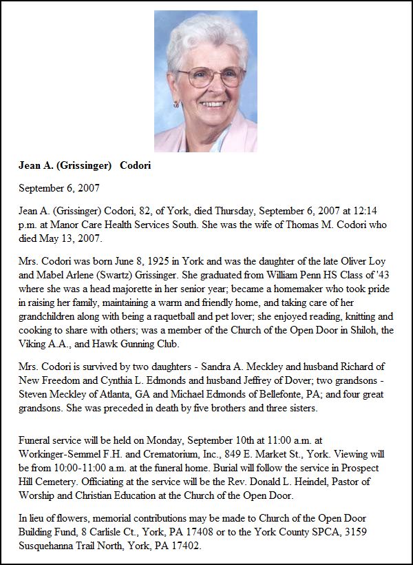 Jean (Grissinger) Codori