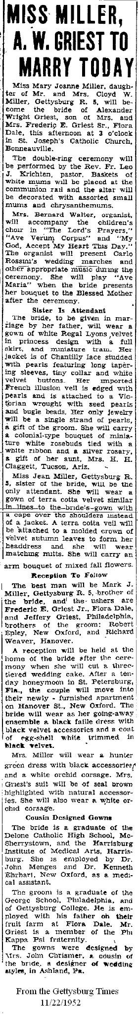L to R: Bill Smith, Helen Spaulding, Adelaide Chrismer, Rosalia Smith, Charles W. Chrismer, Mary Frommeyer, Regina Chrismer. The children are Joanne Miller, Jean Miller, Mary F. Chrismer, Mark Miller and Dottie Chrismer. |