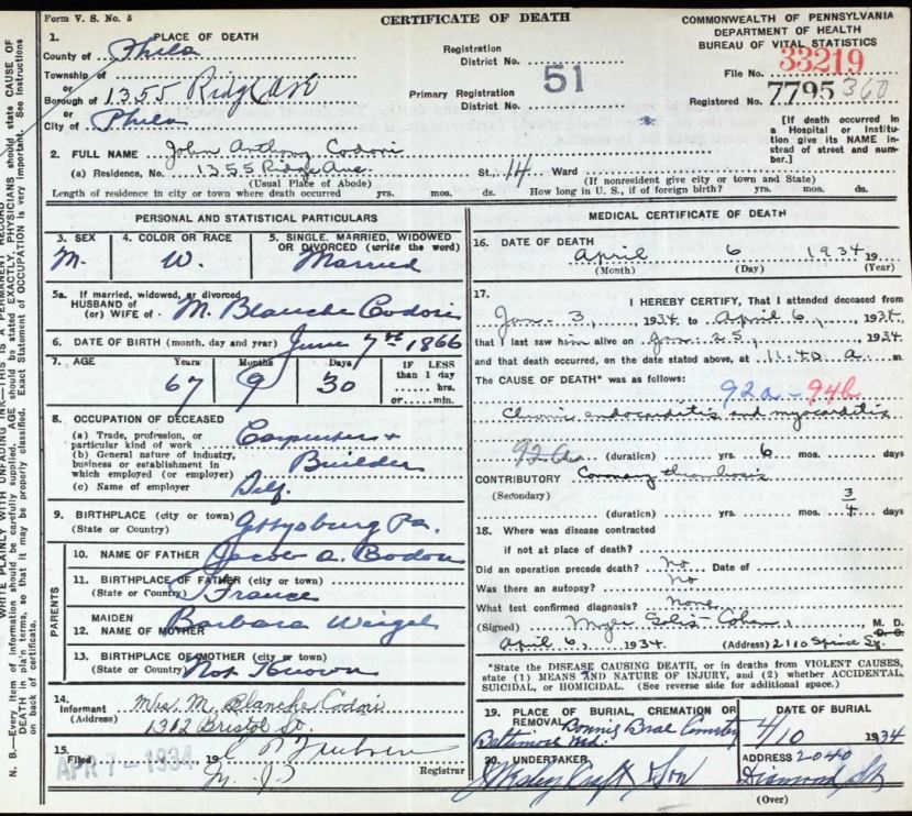 John Anthony Codori (b. July 7, 1866, d. April 6, 1934)