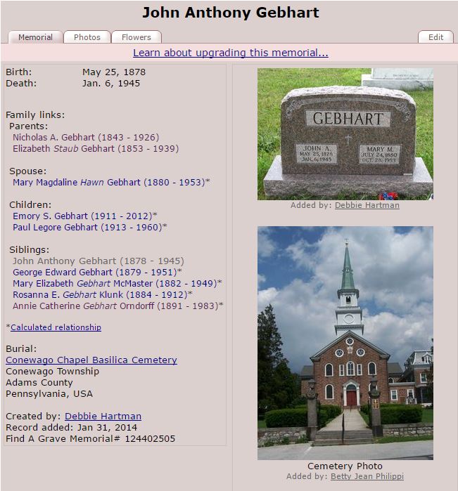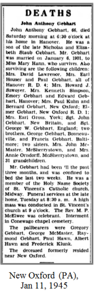 John Anthony Gebhart and his bride Mary Magdelin Hawn