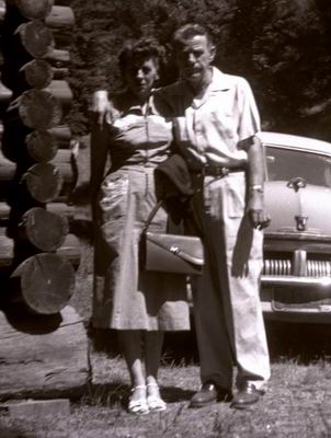 John Jay Codori and Pearl Codori (my mom and dad) at a vacation log cabin near Boulder Creek, Calif, early 1950s |