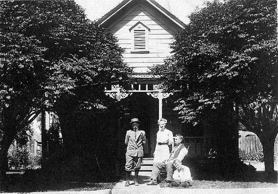 In front of their San Bernardino, Calif. home about 1910. L to R: Fred Codori, Mary Anne Codori, John Nicholas Codori and J.J. Codori |