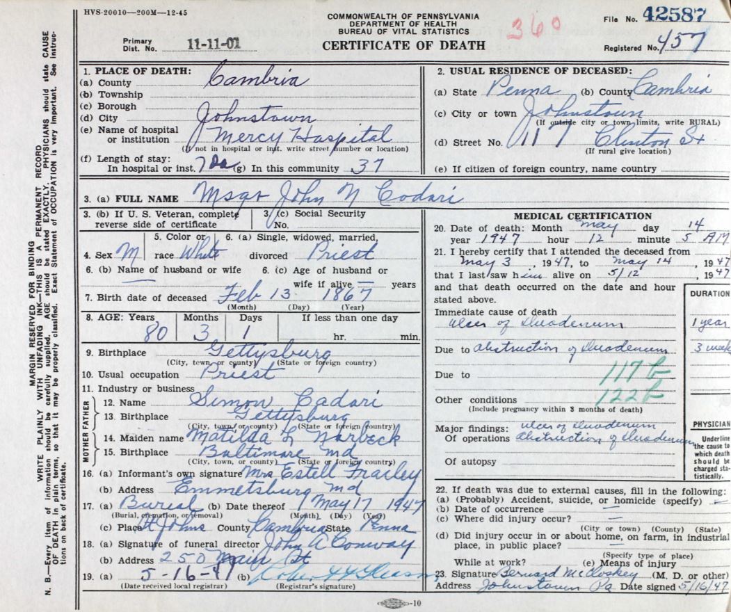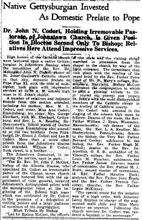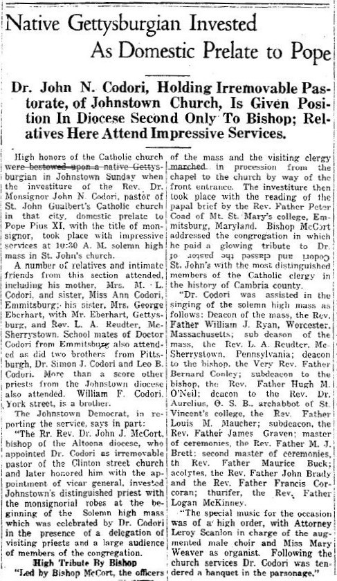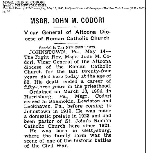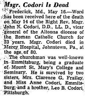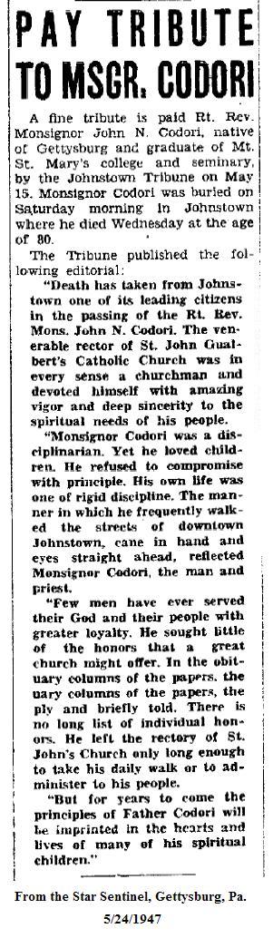 ![]() Msgr. John N. Codori. Photo courtesy of David Mathews. |