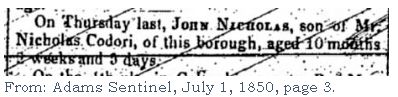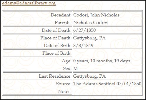 Stone at St. Francis Xavier Cemetery, Gettysburg, PA.