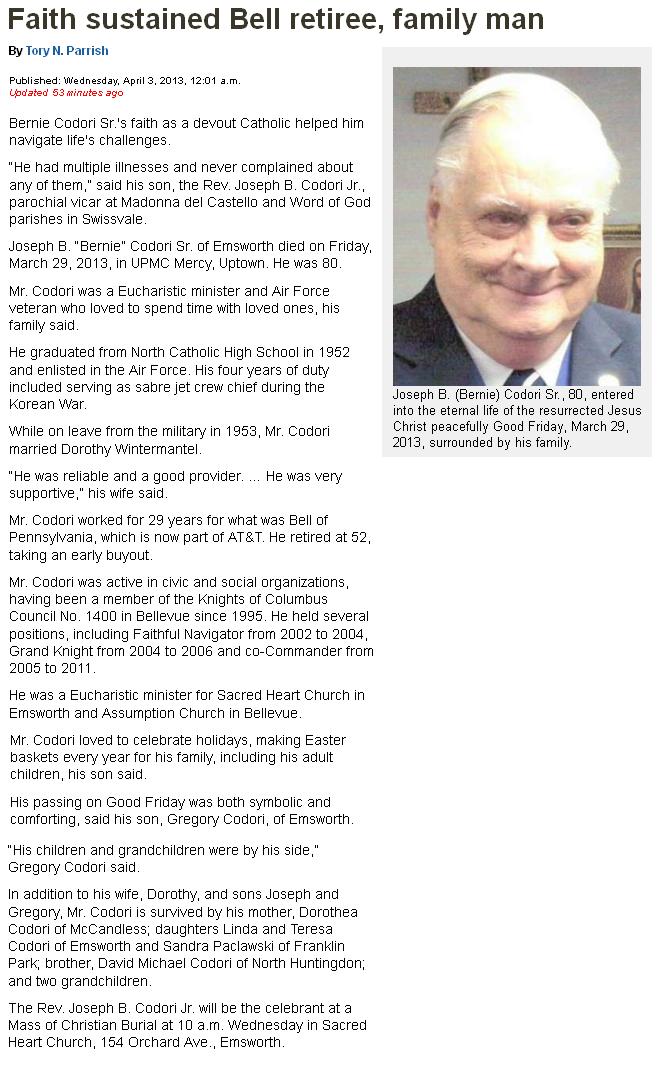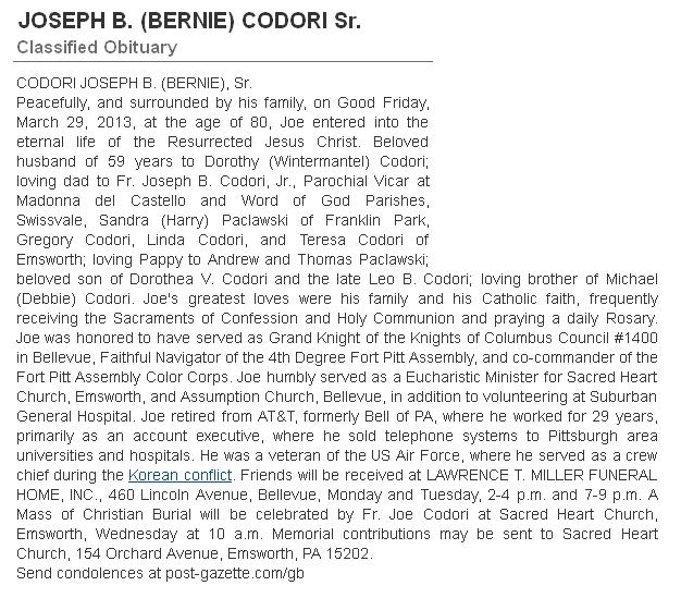 Joe Codori Sr. Family of Pittsburgh, Pa.