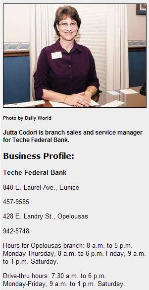 Teche, she was promoted to branch manager.