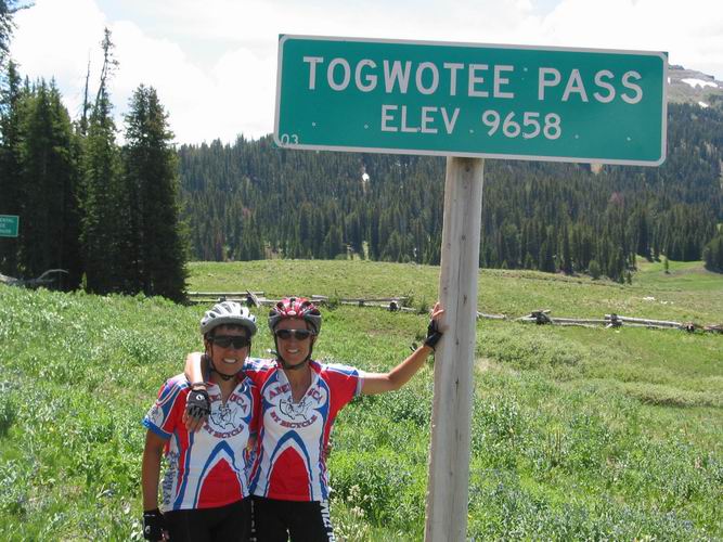 Kathy (right) with friend Leslie at the Continental divide while on an 800 plus mile trip.