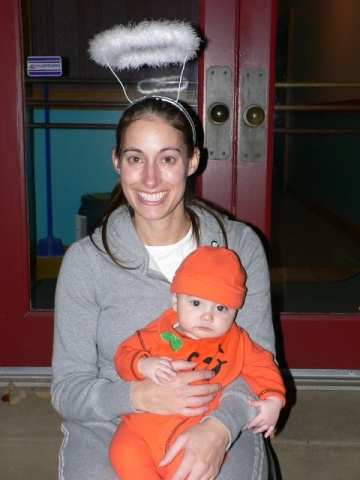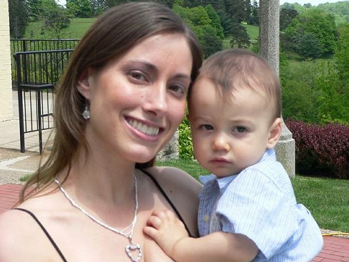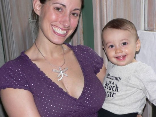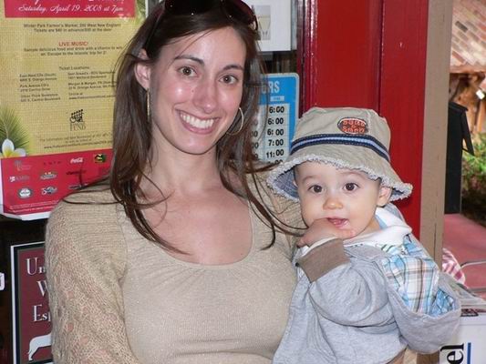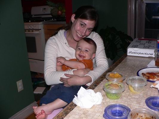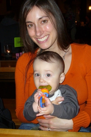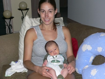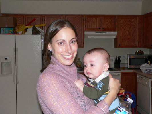 Lindsay with son on his 7 month birthday 2 11 2008 |