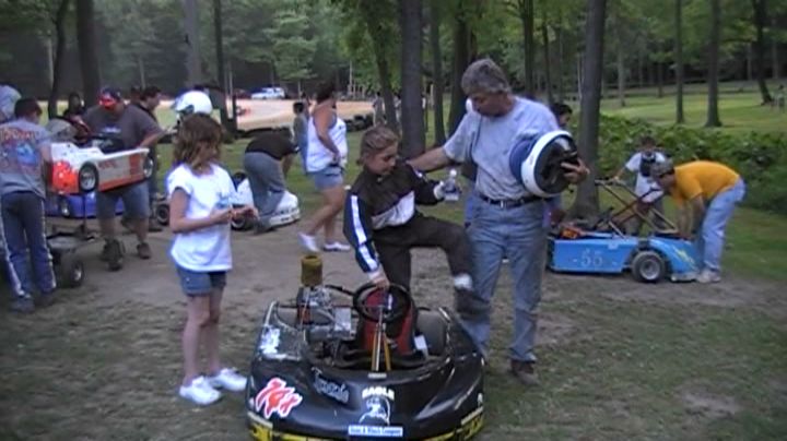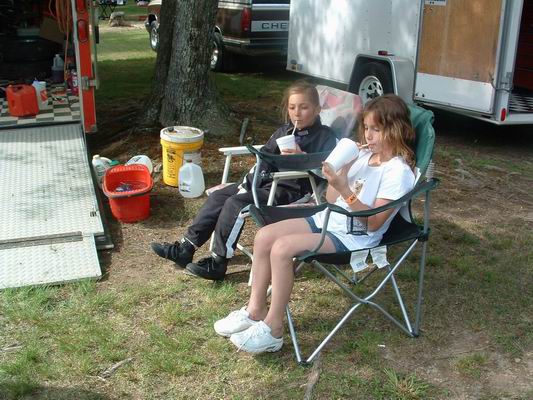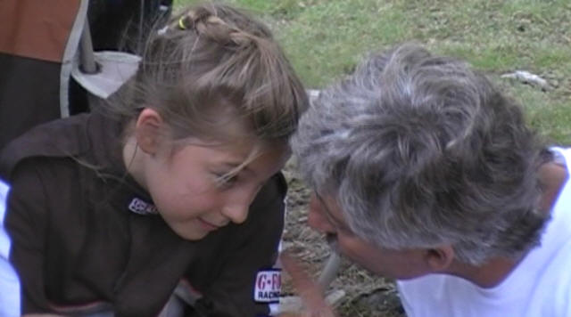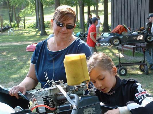 In this photo Malissa and Dad; Ken, put their heads together to figure out new track strategies.