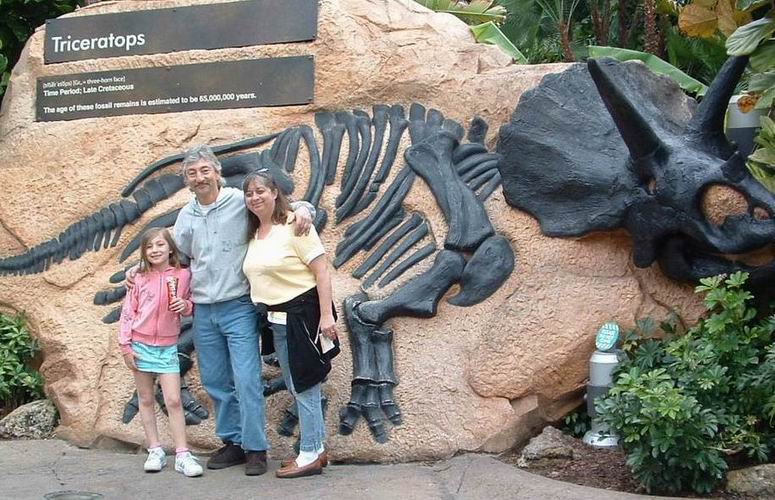 Malissa, Ken and Christy in front of the family pet. |