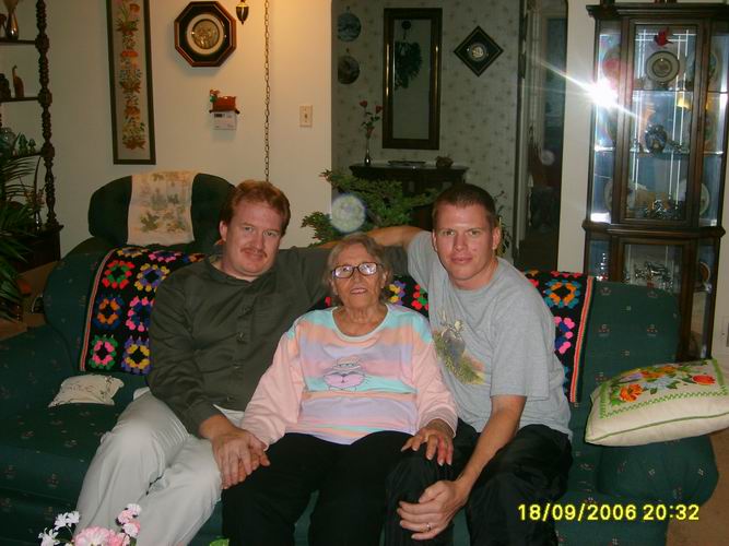Marjorie Chrismer Kreiling with her two grandsons Danny Kreiling (left) and David Kreiling.