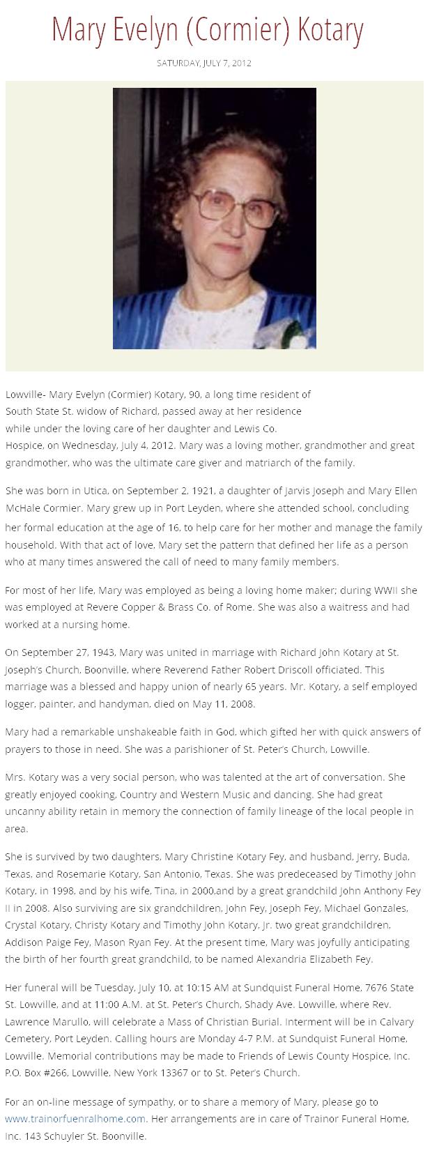 Mary Evelyn (Cormier) Kotary